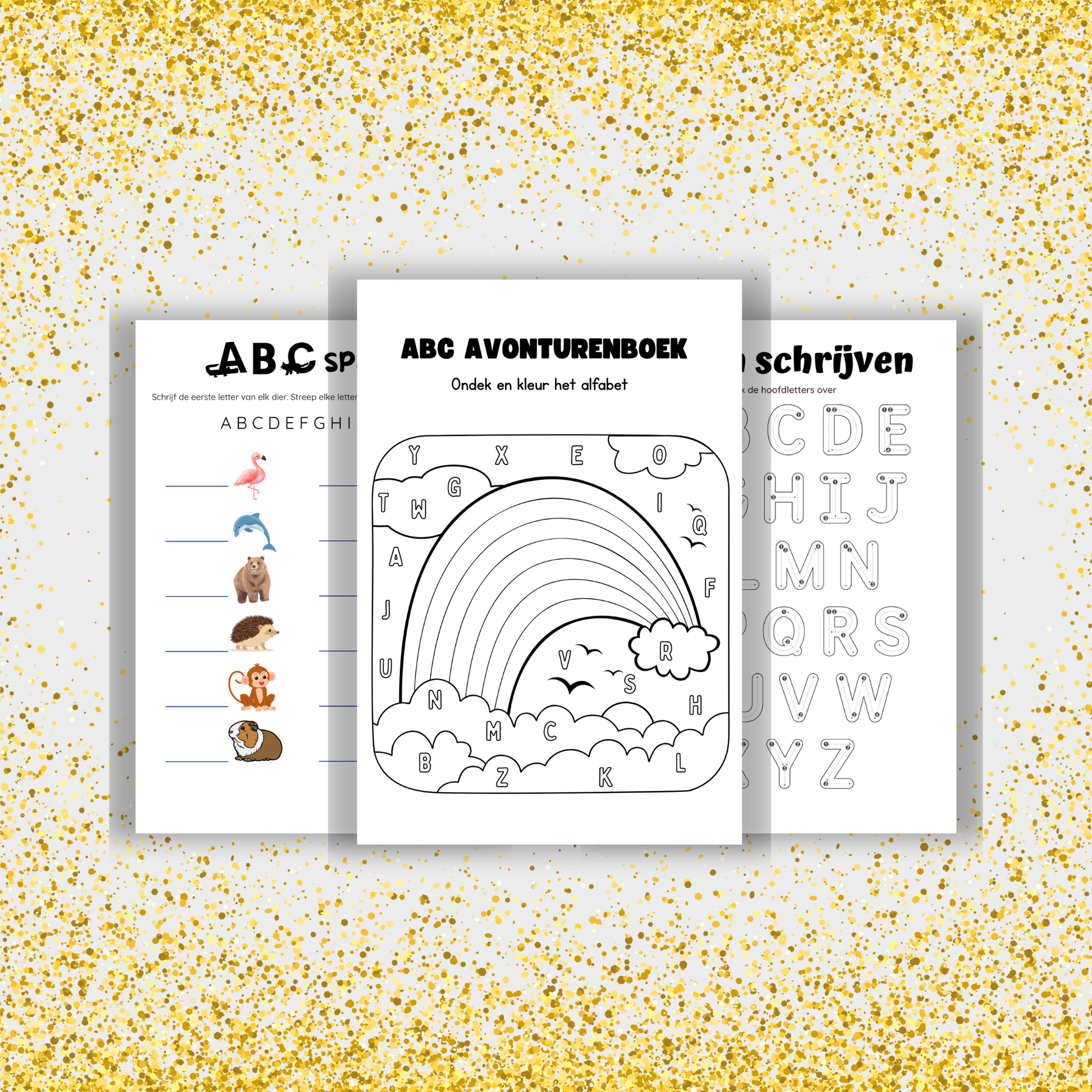 Maak kennis met het alfabet op een speelse en creatieve manier! Het ABC Avonturenboek is een vrolijk én leerzaam fysiek boekje met 40 werkbladen voor kinderen van 4 tot 7 jaar. Kinderen leren stap voor stap alle letters van A tot Z herkennen, schrijven én kleuren.