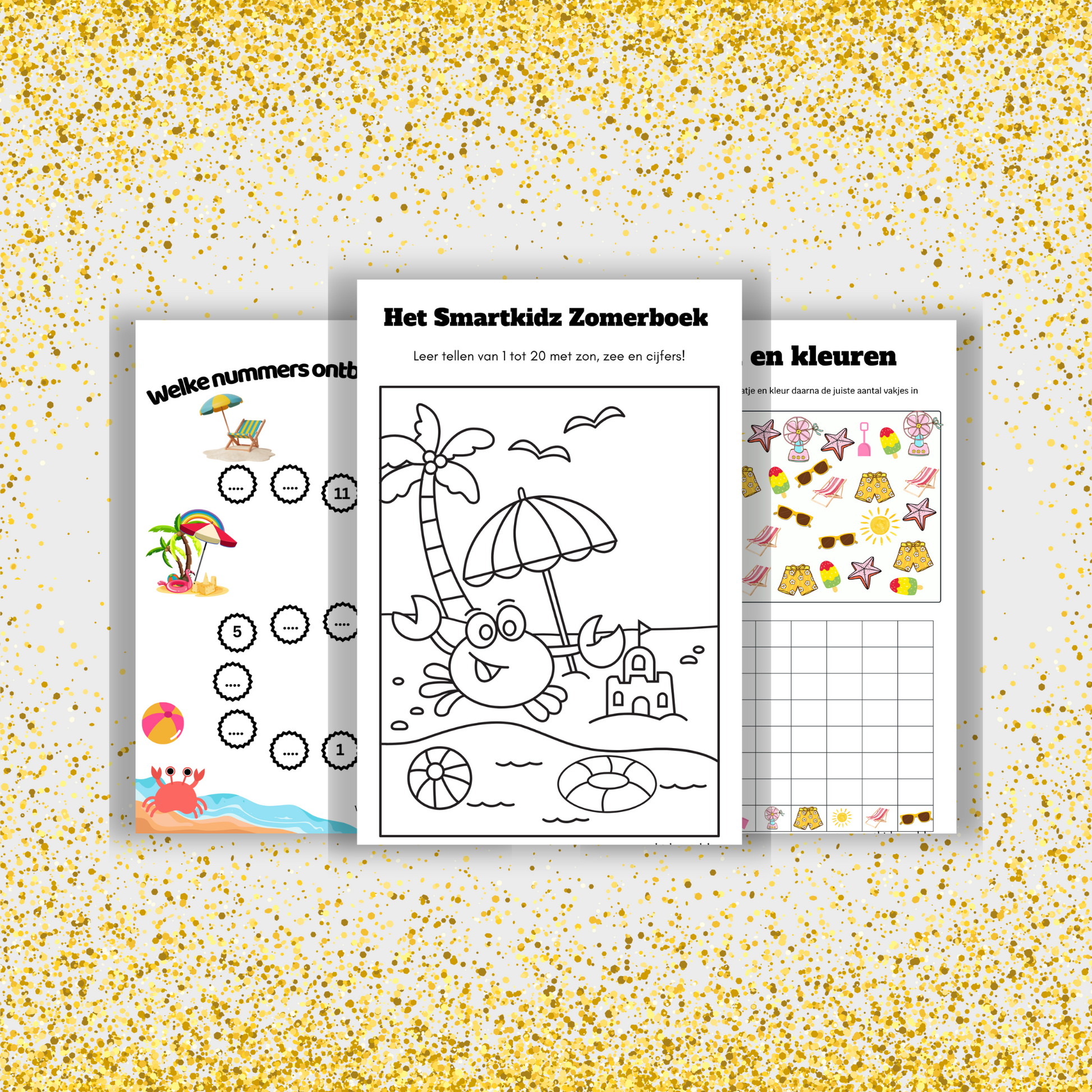 Met zomerse thema’s zoals ijsjes, strand, dieren en zonnestralen ontdekken kinderen stap voor stap de wereld van cijfers. Door te kleuren, zoeken, verbinden en tellen oefenen ze spelenderwijs hun cijferherkenning, telfeiten en motoriek.