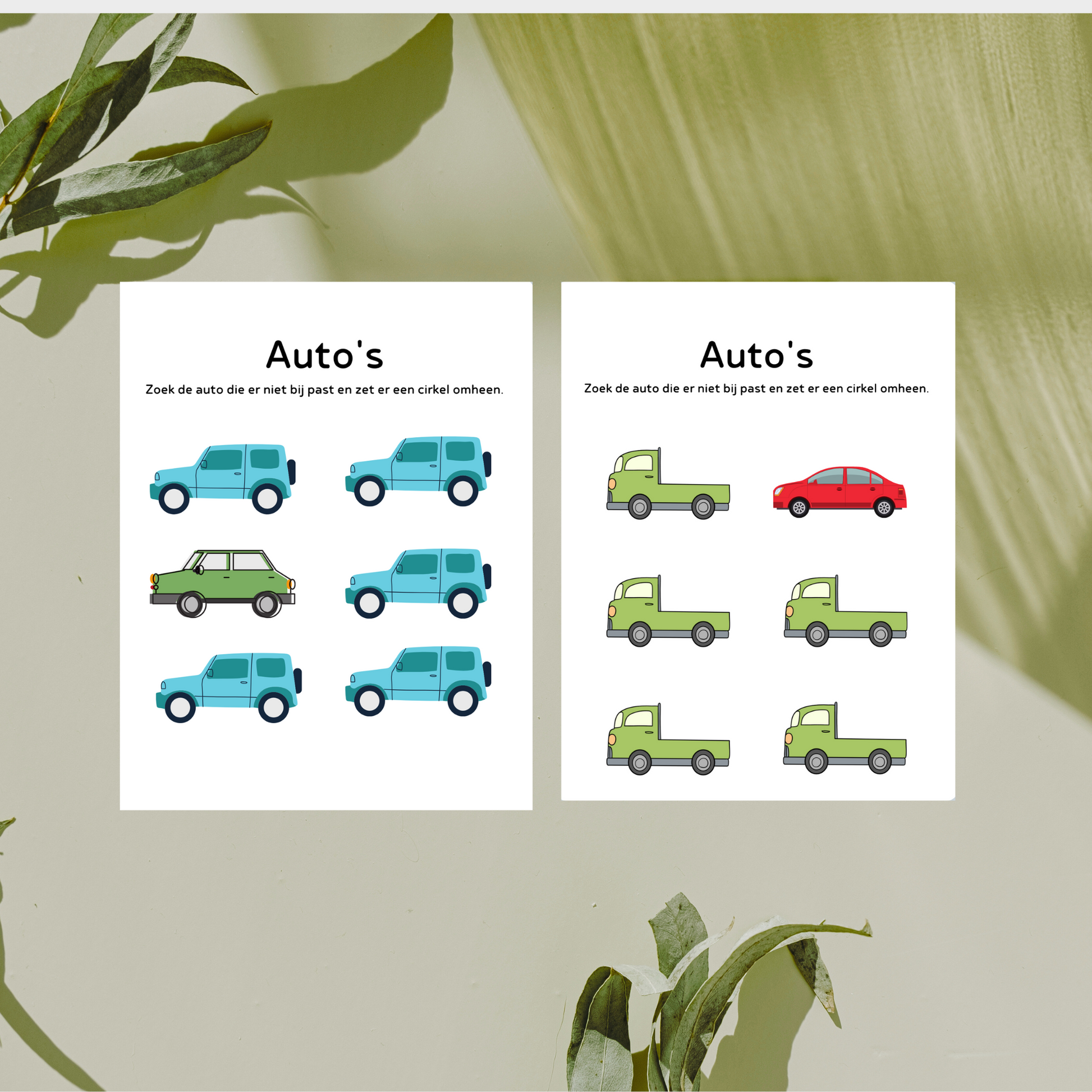 Op dit speelse digitale werkblad gaan kinderen op zoek naar het voertuig dat er niet bij hoort. Tussen de auto’s zit telkens één vreemde eend in de bijt – soms een ander soort voertuig, soms eentje die er nét even anders uitziet.